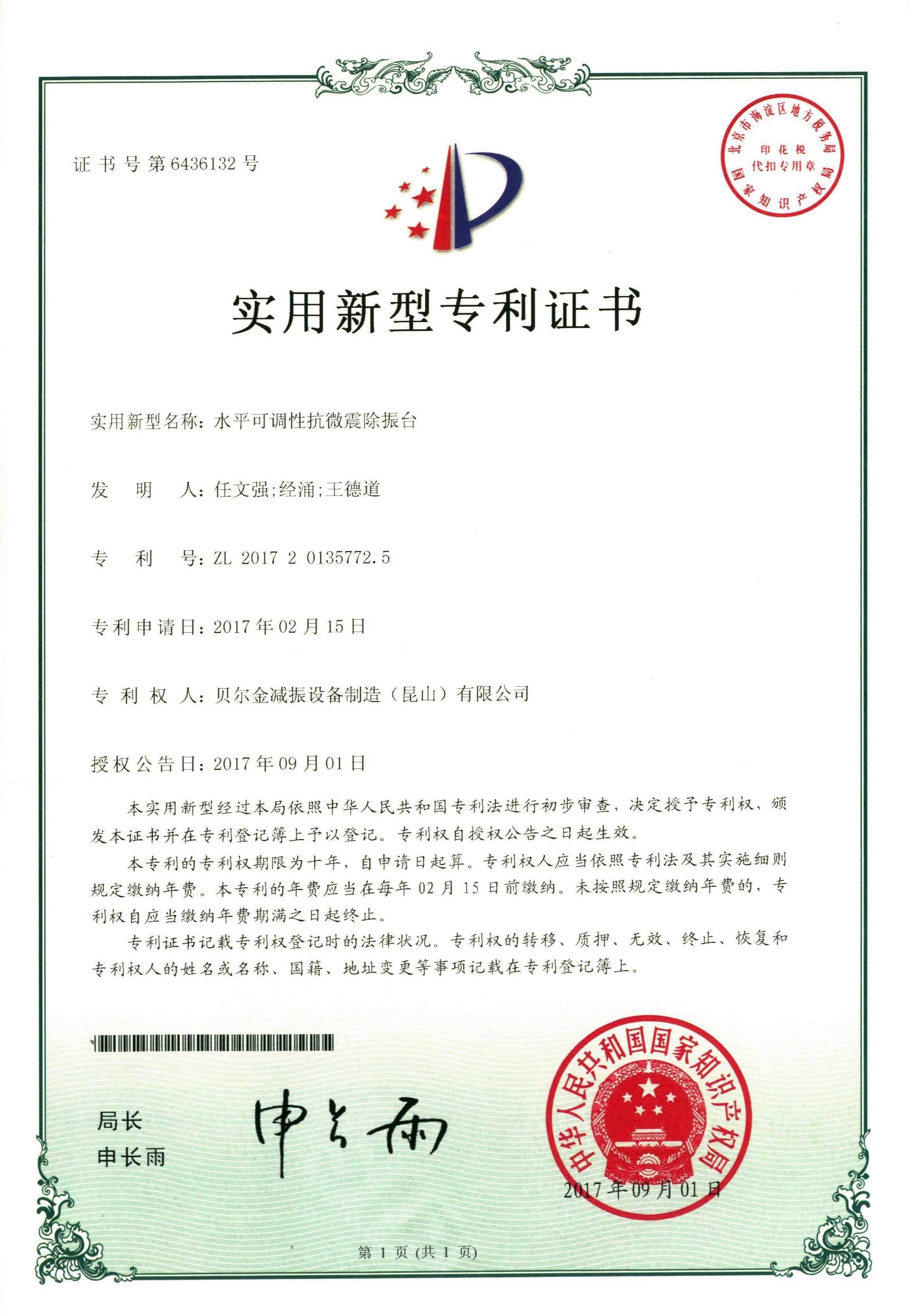 變壓器減振器專利證書…